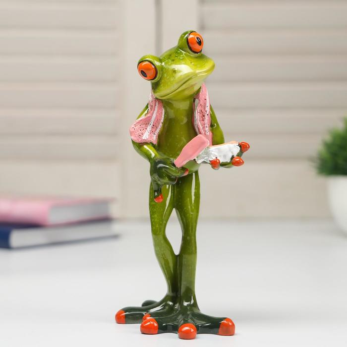 Сувенир полистоун лак "Лягушонок чистит челюсть" 16,5х5,8х8,5 см