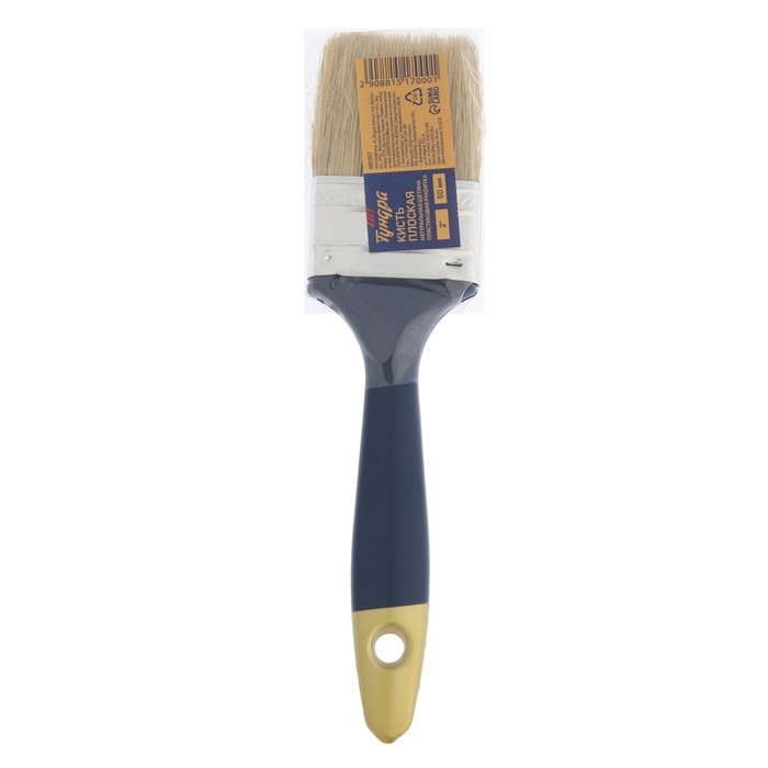 Кисть плоская ТУНДРА, натуральная щетина, пластиковая рукоятка, 2", 50 мм