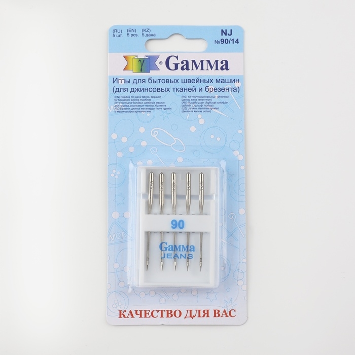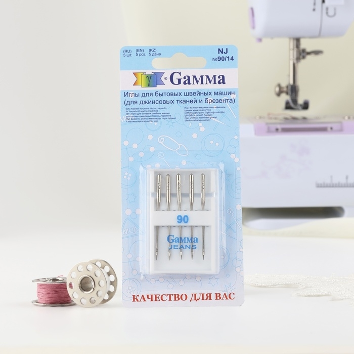 Иглы для бытовых швейных машин, для джинсовых тканей, №90/14, 5 шт