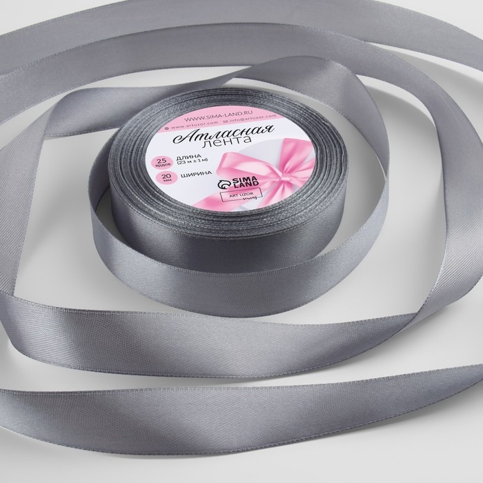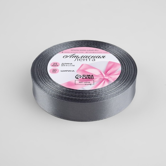 Лента атласная, 20 мм × 23 ± 1 м, цвет тёмно-серый №180