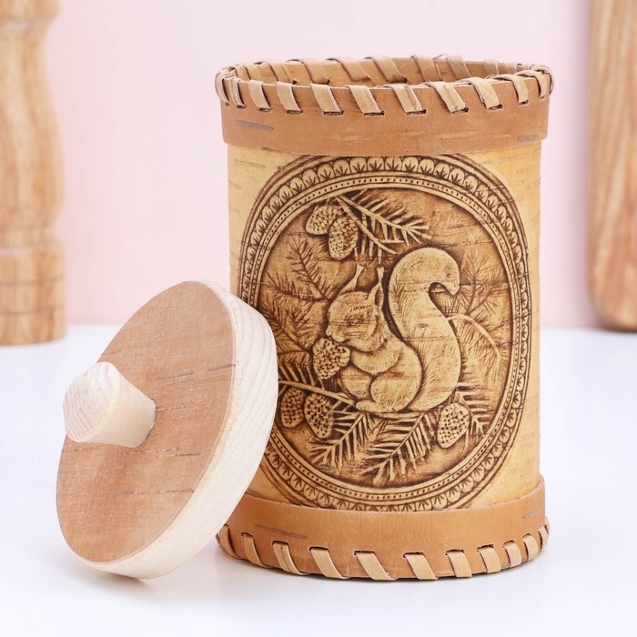 Туес «Белки», 8×8×14 см, береста