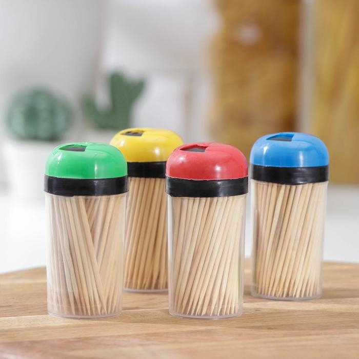 Зубочистки Доляна, 140-150 шт, в пластиковой баночке, цвет МИКС
