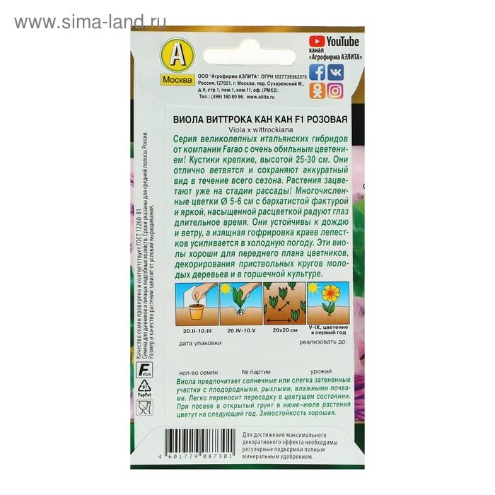 Семена цветов Виола "Кан Кан", F1, розовая, Дв, 7 шт.