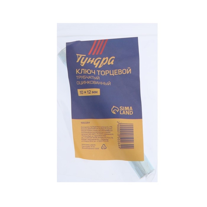 Ключ торцевой трубчатый ТУНДРА, оцинкованный, 10 х 12 мм