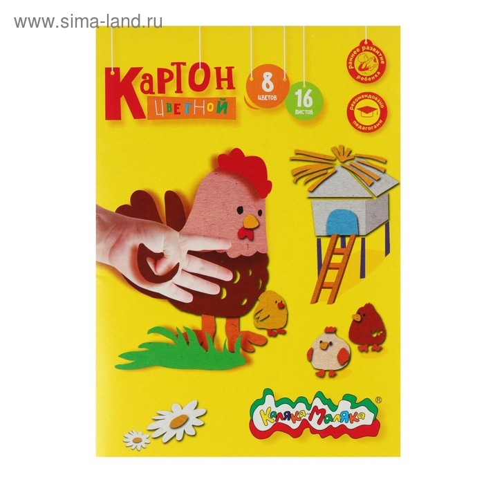 Картон цветной А4, 16 листов, 8 цветов "Каляка-Маляка", немелованный, односторонний