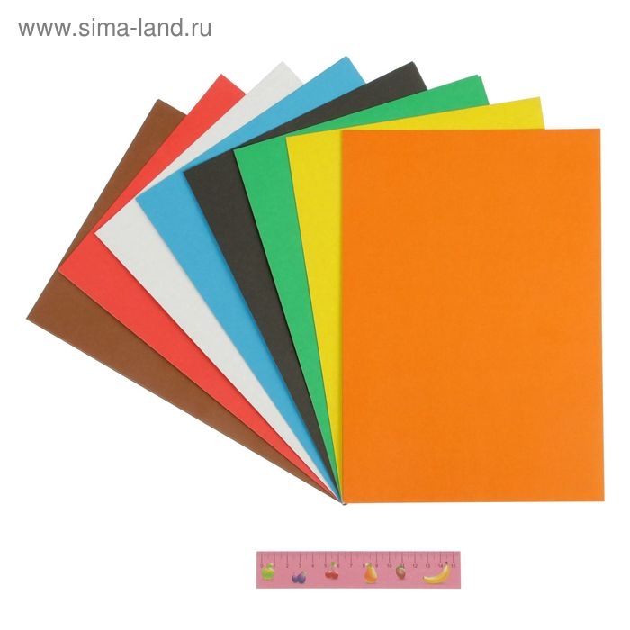Картон цветной А4, 8 листов, 8 цветов, Calligrata, немелованный 220 г/м2, на скобе