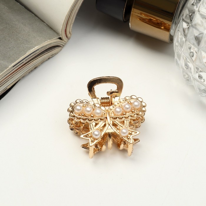 Краб для волос "Жемчужный" бантик, 2,5 см, золото