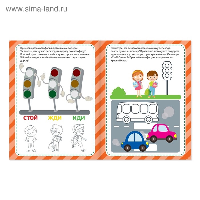 Обучающие наклейки созданы для лёгкого знакомства с правилами дорожного движения и закрепления навыков безопасного поведения на дорогах.