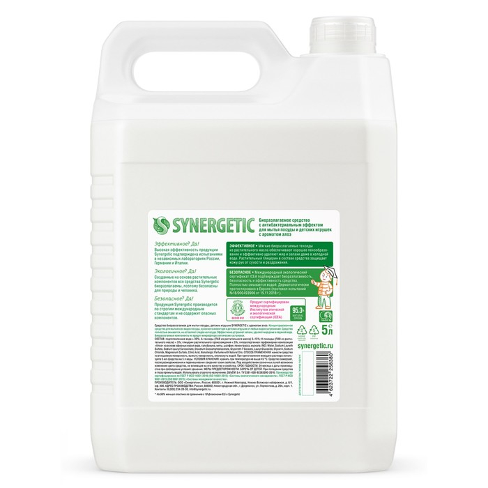 Средство для мытья посуды Synergetic "Алоэ вера", с антибактериальным эффектом, 5 л