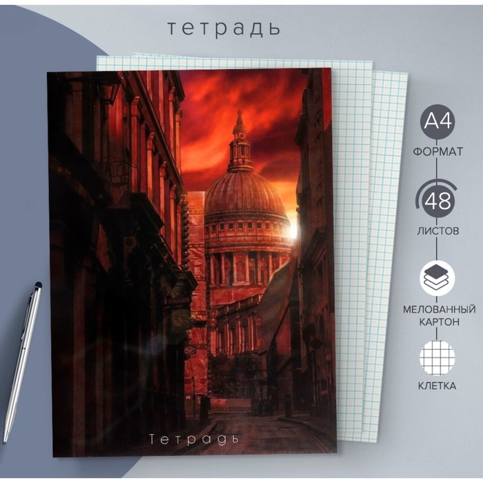 Тетрадь А4, 48 листов в клетку Calligrata "Городские улицы", обложка мелованный картон, блок №2, белизна 75%, (серые листы)