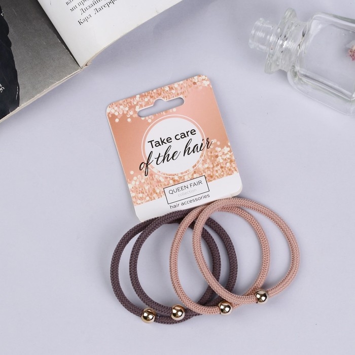Резинка для волос "Плетение" (набор 4 шт) коричневый
