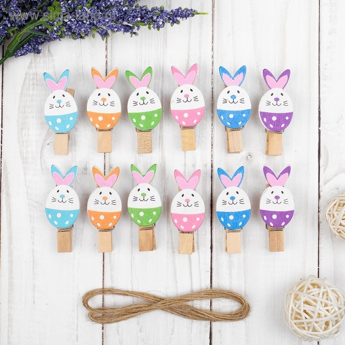 Прищепки декоративные с веревкой для подвеса "Пасха", 10 шт.