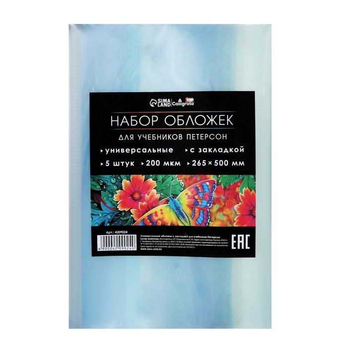Набор обложек ПЭ 5 штук, 265 x 500 мм, 200 мкм, для учебника Петерсон, универсальная, с закладкой, МИКС