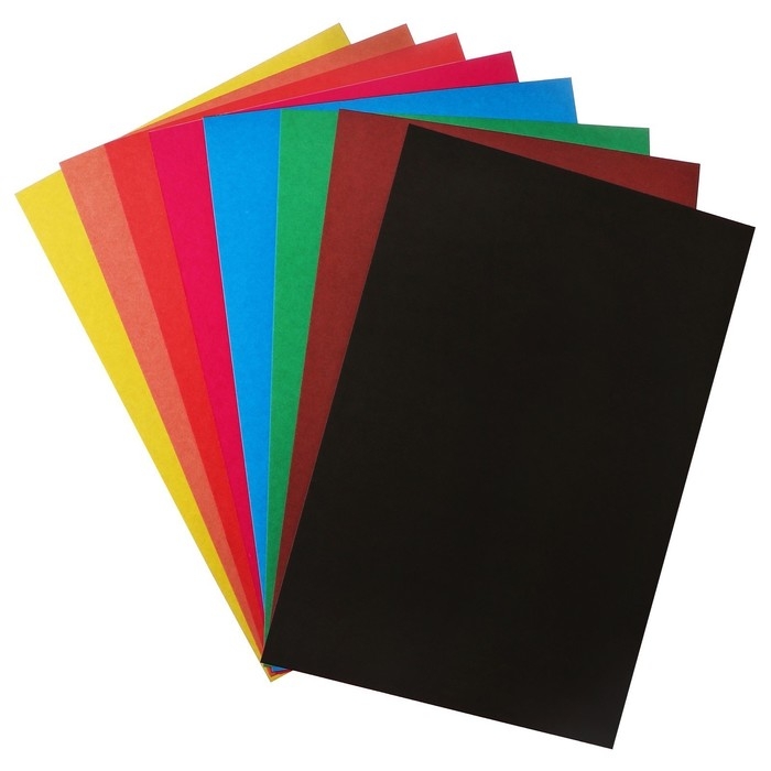 Картон цветной А4, 8 листов, 8 цветов, немелованный 370 г/м2, в папке