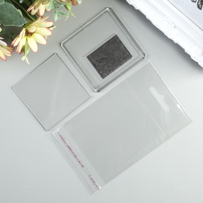 Заготовка акрилового магнита 6,3х6,3 cм прозрачный (набор 2 детали+пакет)