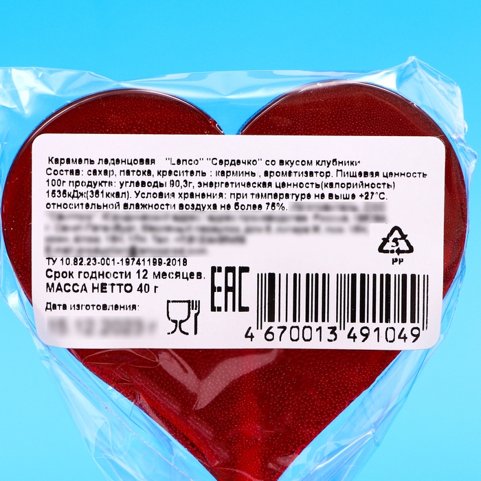Новый год. Карамель леденцовая Lenco, «Сердечко» со вкусом клубники, 40 г