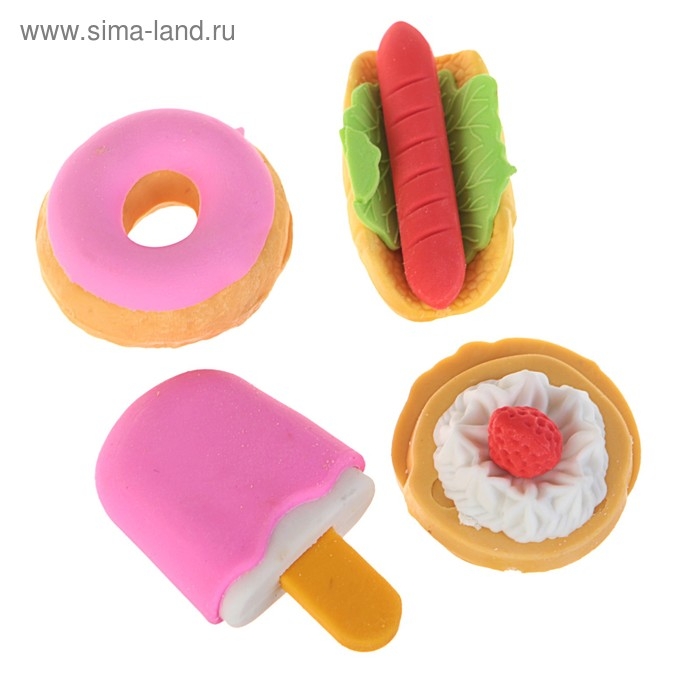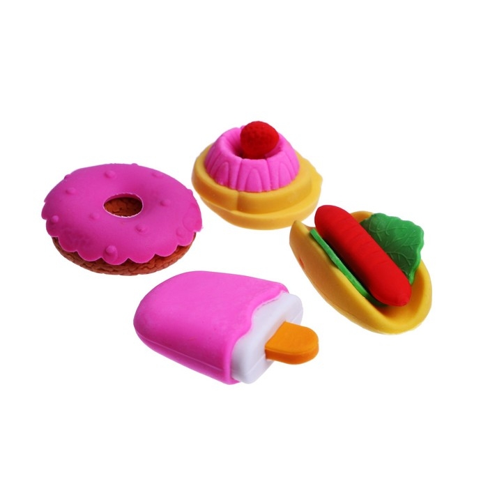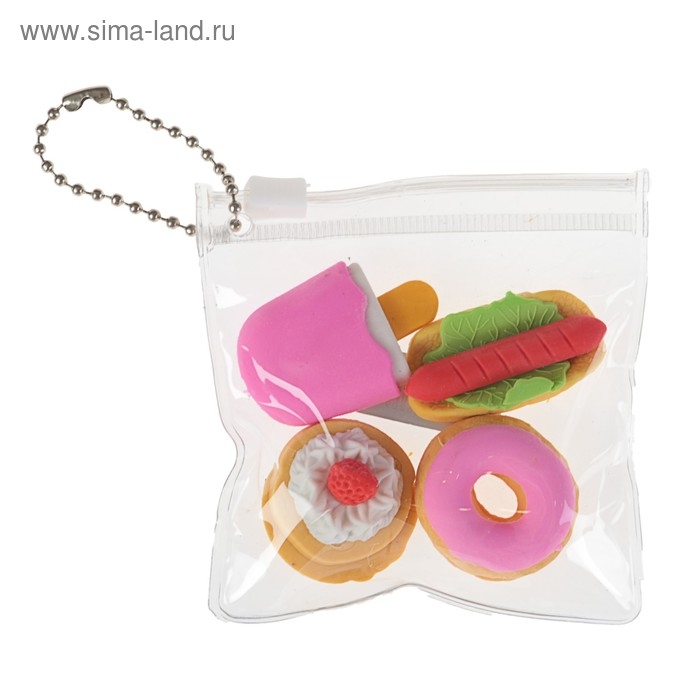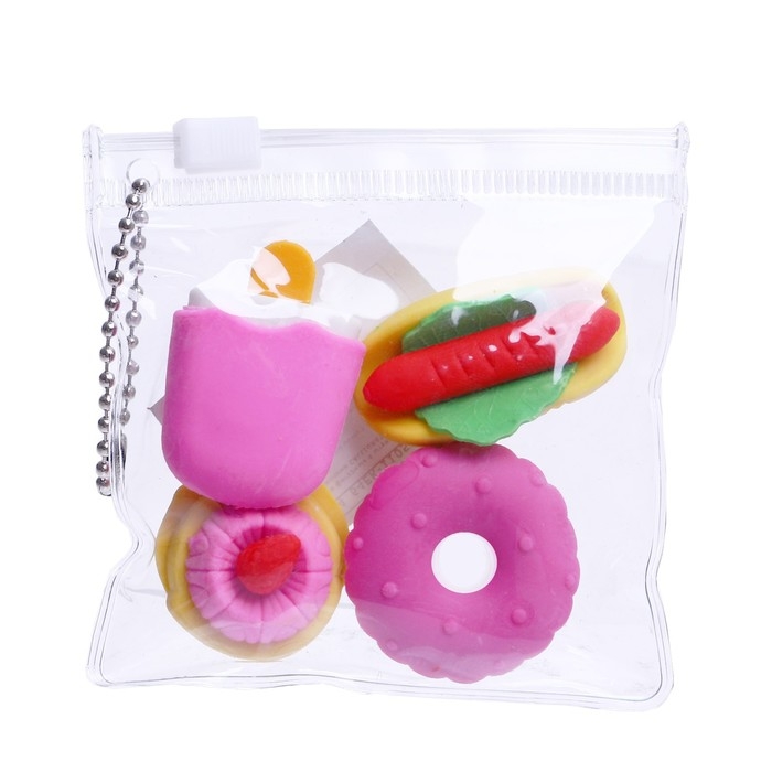 Набор фигурных ластиков "Десерты", 4 штуки, в пакете на зип-молнии, МИКС (штрихкод на штуке)