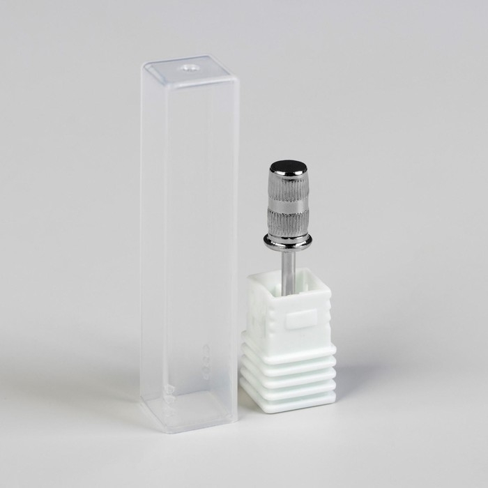 Фреза керамическая для маникюра «Конус скруглённый», крупная нарезка, 6 × 14 мм, в пластиковом футляре, цвет белый