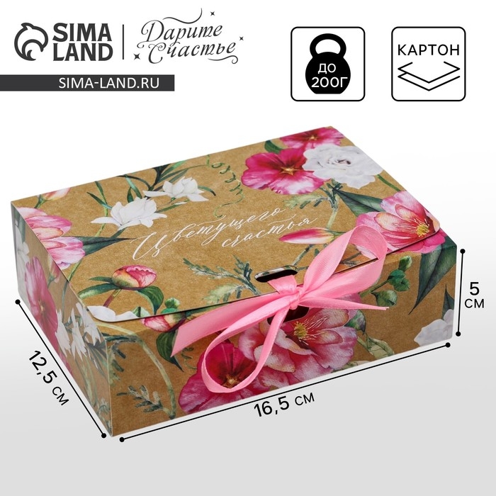 Коробка подарочная, упаковка, «Цветущего счастья», 16,5 х12,5 х5 см