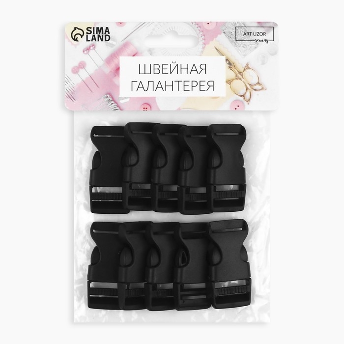 Фастекс 20 мм, нагрузка до 15 кг, 10 шт, цвет чёрный, цена за 1 набор