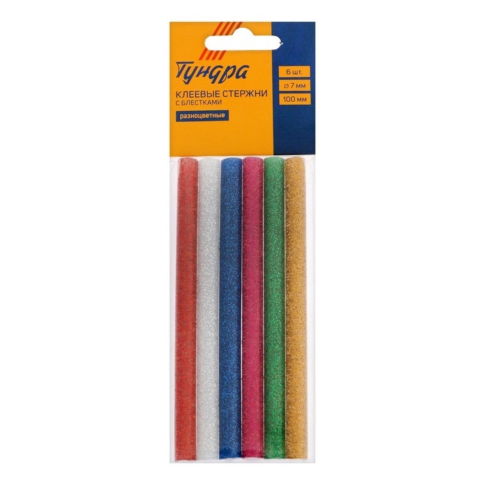 Клеевые стержни ТУНДРА, 7 х 100 мм, разноцветные с блестками, 6 шт.