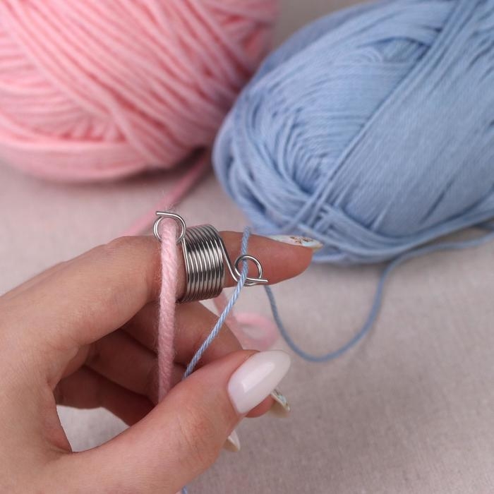 Пружинный напёрсток для вязания орнамента — это незаменимый атрибут для рукодельниц, любящих творить с комфортом. Он прост в применении даже для новичка. Пружинный напёрсток позволяет легко разделять нити разных цветов, рассчитан на две нити (две направляющие).