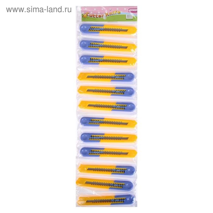 Нож канцелярский, лезвие 18 мм, корпус пластик, фиксатор, блистер, МИКС