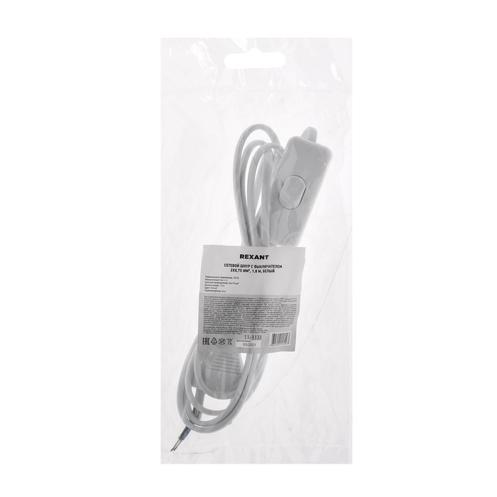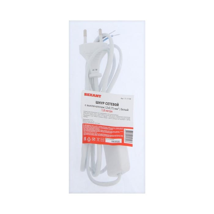 Сетевой шнур REXANT, с выключателем, 1.8 м, 2х0.75 мм2, белый