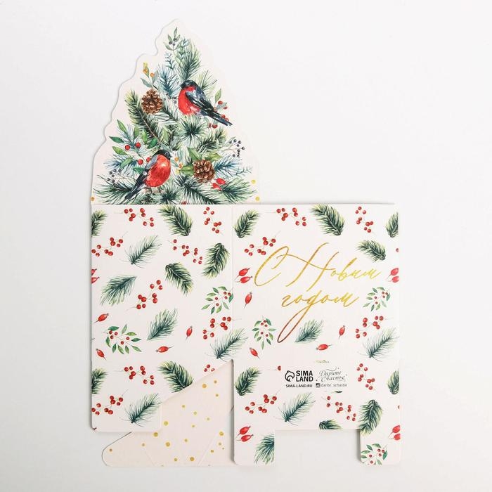 Коробка новогодняя для мини-букетов «С новым годом», снегири, 12 х 17 х 10 см, Новый год