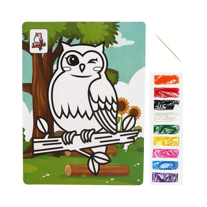 Фреска с цветным основанием «Сова» 9 цветов песка по 2 г