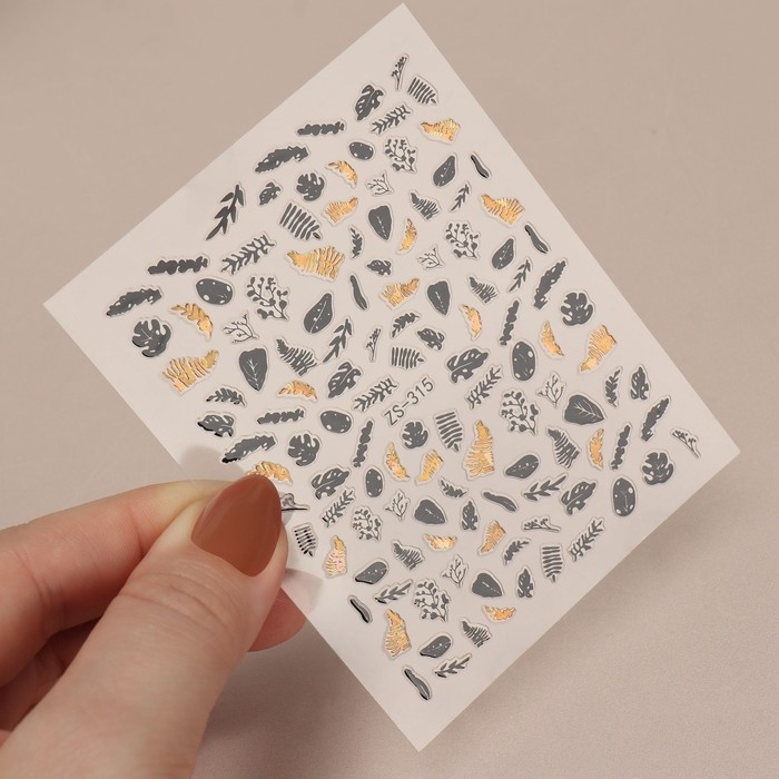 Наклейки для ногтей «Листопад», металлизированные, цвет золотистый/чёрный