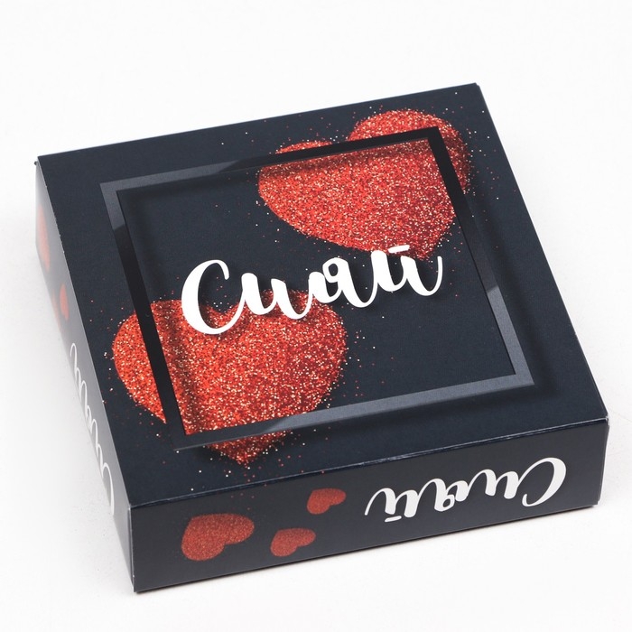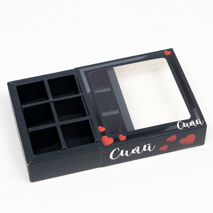 Коробка для 8 конфет + шоколад, с окном "Презент", 17,7 х 17,8 х 3,8 см. Кондитерская упаковка