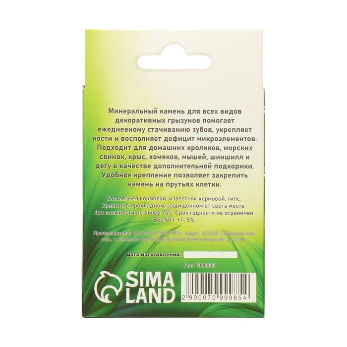 Дополнительная подкормка для домашних кроликов, морских свинок, крыс, хомяков, мышей, шиншилл и дегу. Удобное крепление позволяет закрепить камень на прутьях клетки.