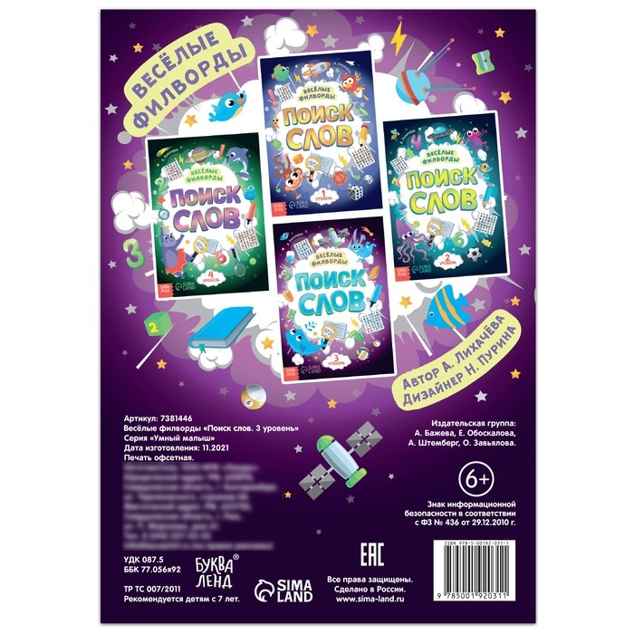 Весёлые филворды «Поиск слов. 3 уровень», 16 стр.