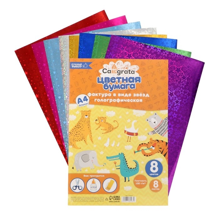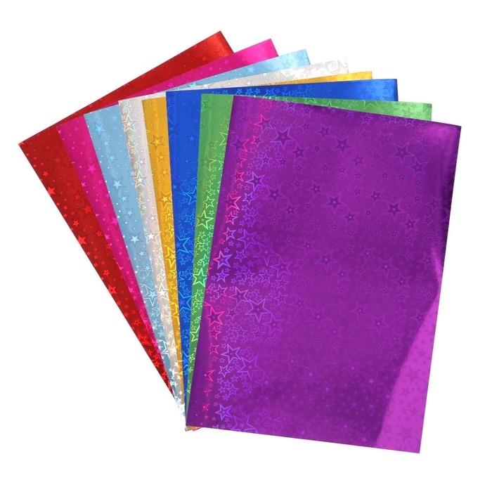 Набор бумаги голографической "Звезды" А4, 8 листов, 8 цветов, рисунок, 100 г/м2