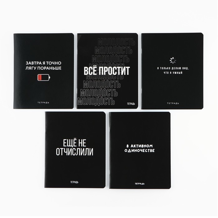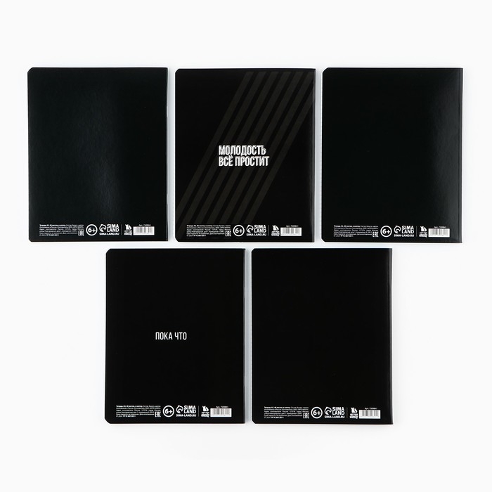 Тетрадь А5, 48 л на спирали, внутренний блок №1 МИКС «Черный фон. Фразы»