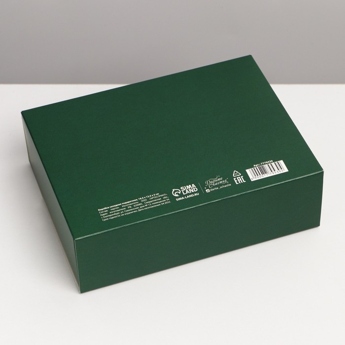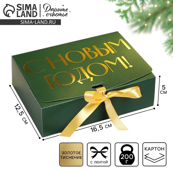 Коробка подарочная новогодняя складная «С новым годом», тиснение, зеленый, 16.5 х 12.5 х 5 см, Новый год