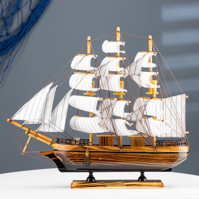 Корабль "Кариста" трехмачтовый с белыми парусами, 40*5,5*33см
