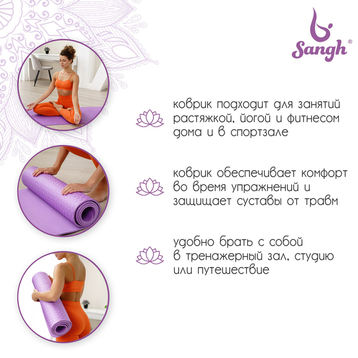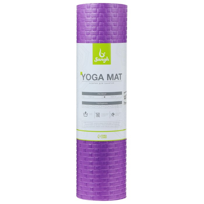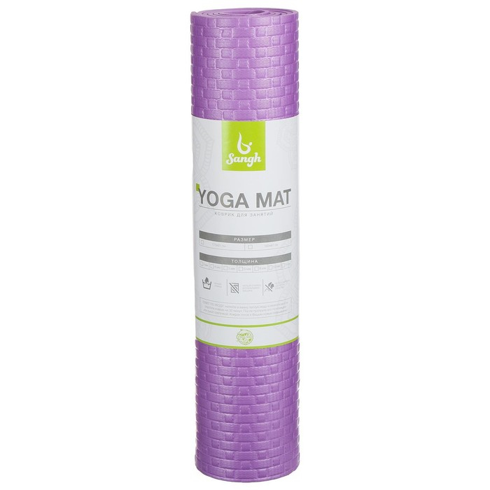 Коврик для йоги Sangh, 183×61×0,6 см, цвет фиолетовый