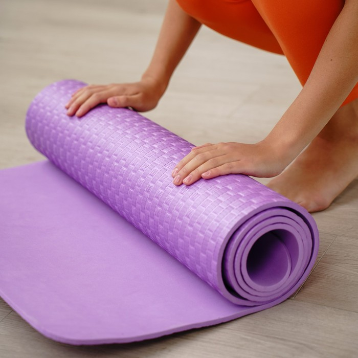 Коврик подходит для занятий йогой и фитнесом дома и в спортивных залах. Помогает в выполнении асан или других упражнений. Смягчает упор тела на твёрдую поверхность. Сохраняет форму после выполнения упражнений.