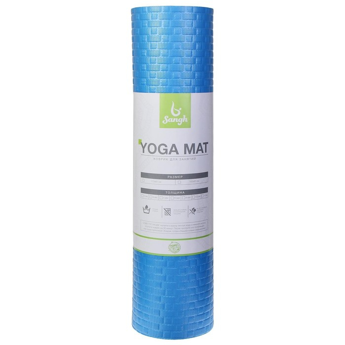 Коврик для йоги Sangh, 183х61х0,7 см, цвет синий