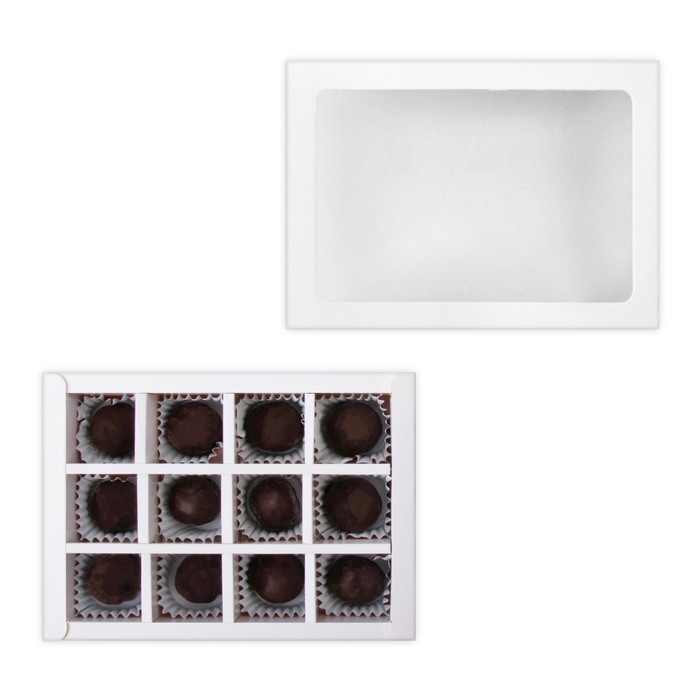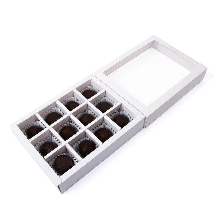Коробка для 12 конфет, белая, 19 х 15 х 3,5 см. Кондитерская упаковка