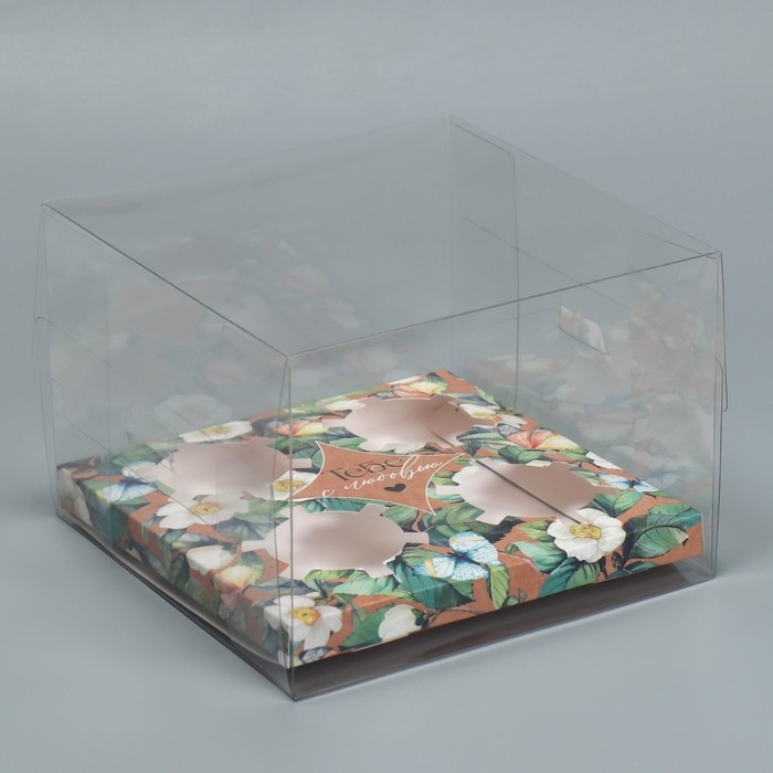 Коробка для капкейка, кондитерская упаковка, 4 ячейки «Тебе с любовью», 16 х 16 х 11.5 см