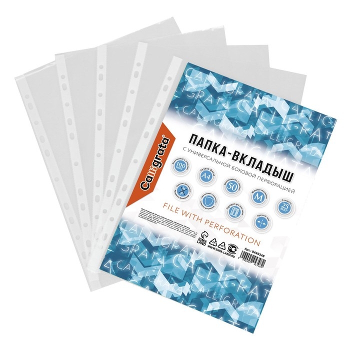 Перфорированные папки-файлы (файлы-вкладыши) Calligrata обеспечивают сохранность бумажных носителей, защищают их от истирания, увлажнения, загрязнения, при этом обладают требуемыми параметрами прочности и прозрачности, позволяют систематизировать все важные документы.