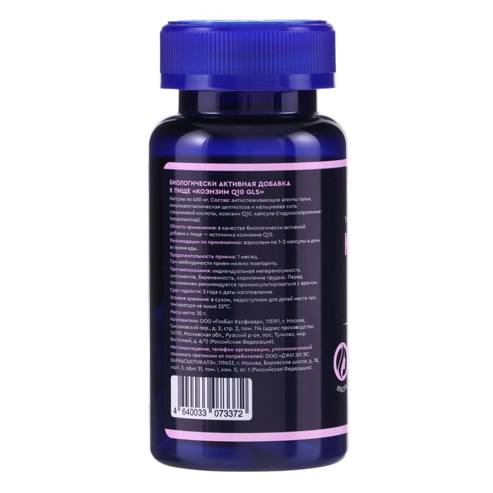 GLS КОЭНЗИМ Q10 - Биологически активная добавка (БАД) к пище - Коэнзим Q10 (Убихинон) - витаминоподобное вещество, катализатор жизненно важных процессов организма.