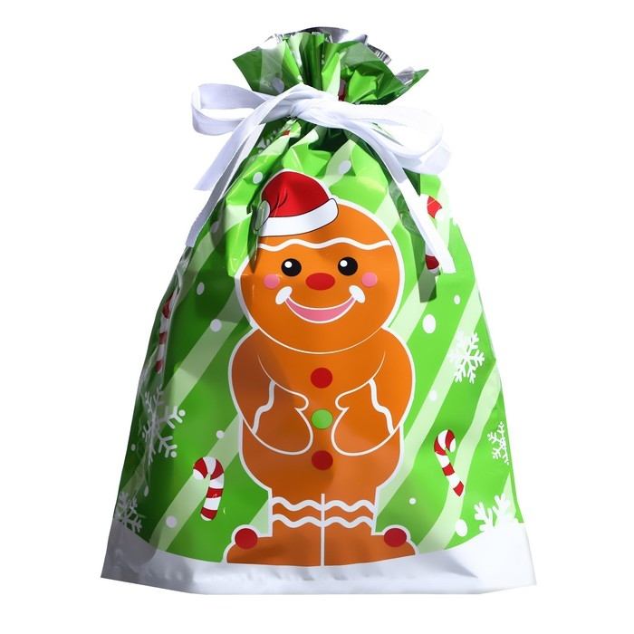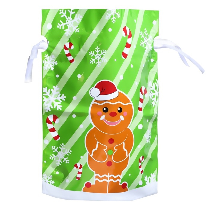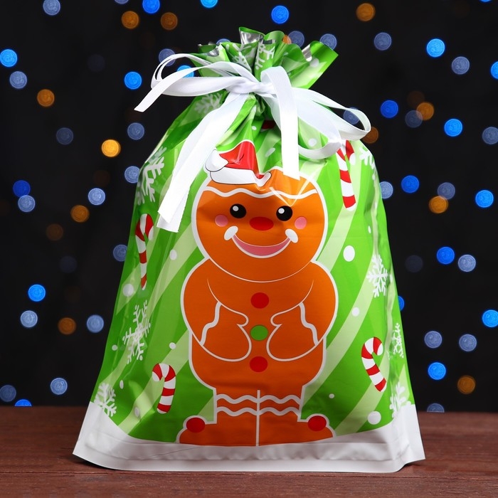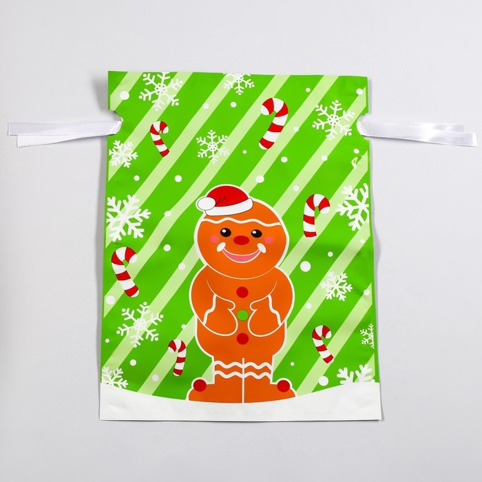 Новый год. Пакет подарочный с завязками, "Пряничный человек", 24х32 см.