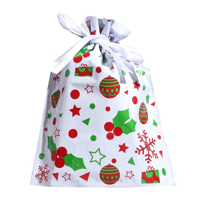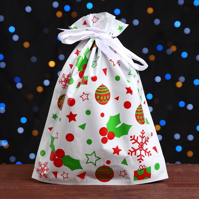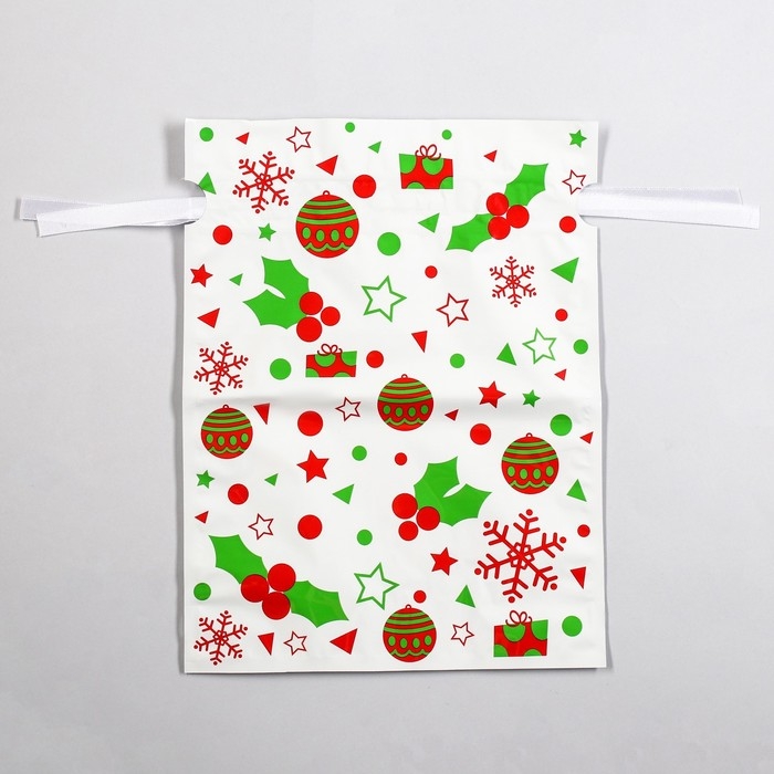 Новый год. Пакет подарочный с завязками, "Ассорти", 24х32 см.