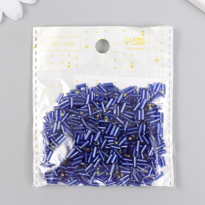 Стеклярус стекло 3” "Ярко-синий" металлик набор 20 гр