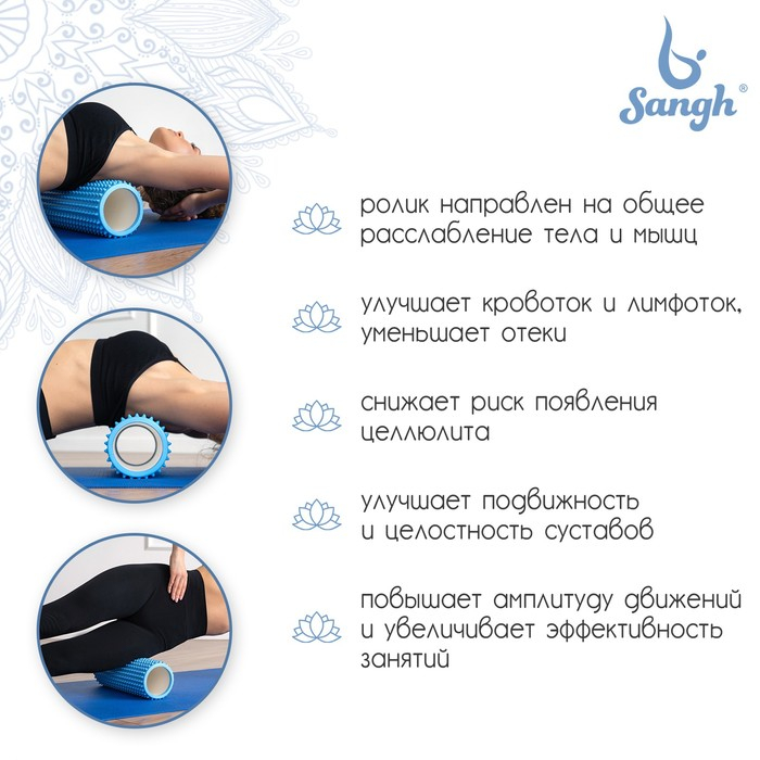 Ролик массажный Sangh, 30х10 см, цвет синий