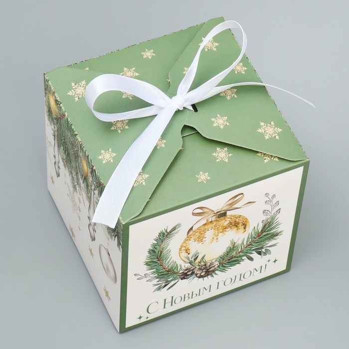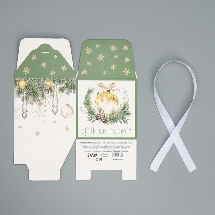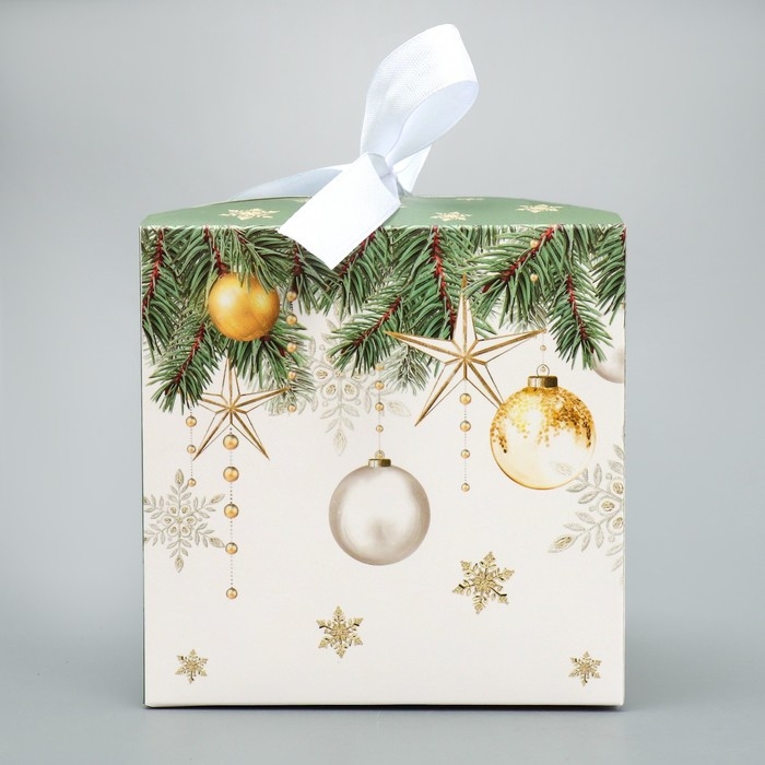 Коробка подарочная новогодняя складная «С Новым годом!», ёлочные украшения, 12 х 12 х 12 см, Новый год